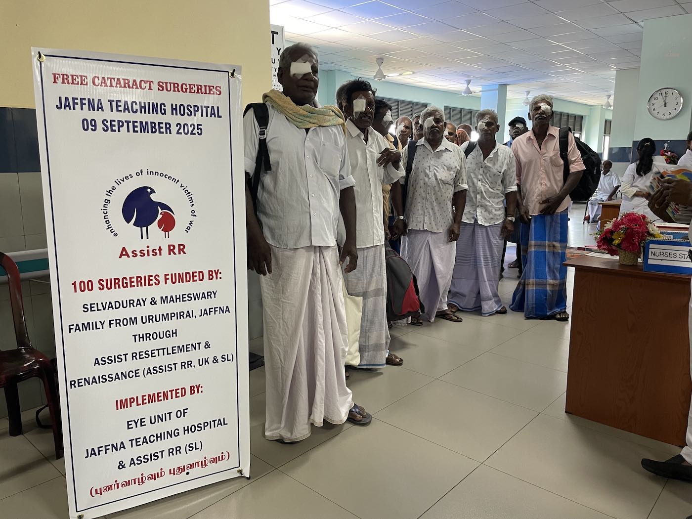 Using funds raised by our friends, families, and like-minded charities in the UK, Malaysia, Singapore, and Australia, Assist RR funded 13,975 cataract surgeries in 11 government hospitals covering 15 districts between Dec 2024 and Dec 2025 – Summary of Cataract Surgeries funded in 2025. Assist RR, which started funding cataract surgeries in 2013, has now funded around 75,300 cataract surgeries by the end of Dec 2025. Waiting time in the Northern Province (except Vavuniya) is currently a matter of days only. This situation became a reality because of the dedication and hard work of Dr M Malaravan (Eye Surgeon) and his team at the eye unit of TH Jaffna, and uninterrupted supplies of Intra Ocular Lens (IOLs) and consumables by Assist RR since Jan 2023.